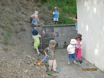Bilder der Kappeler Krabbelgruppe beim "Krabbeln" hinterm Gemeinschaftshaus